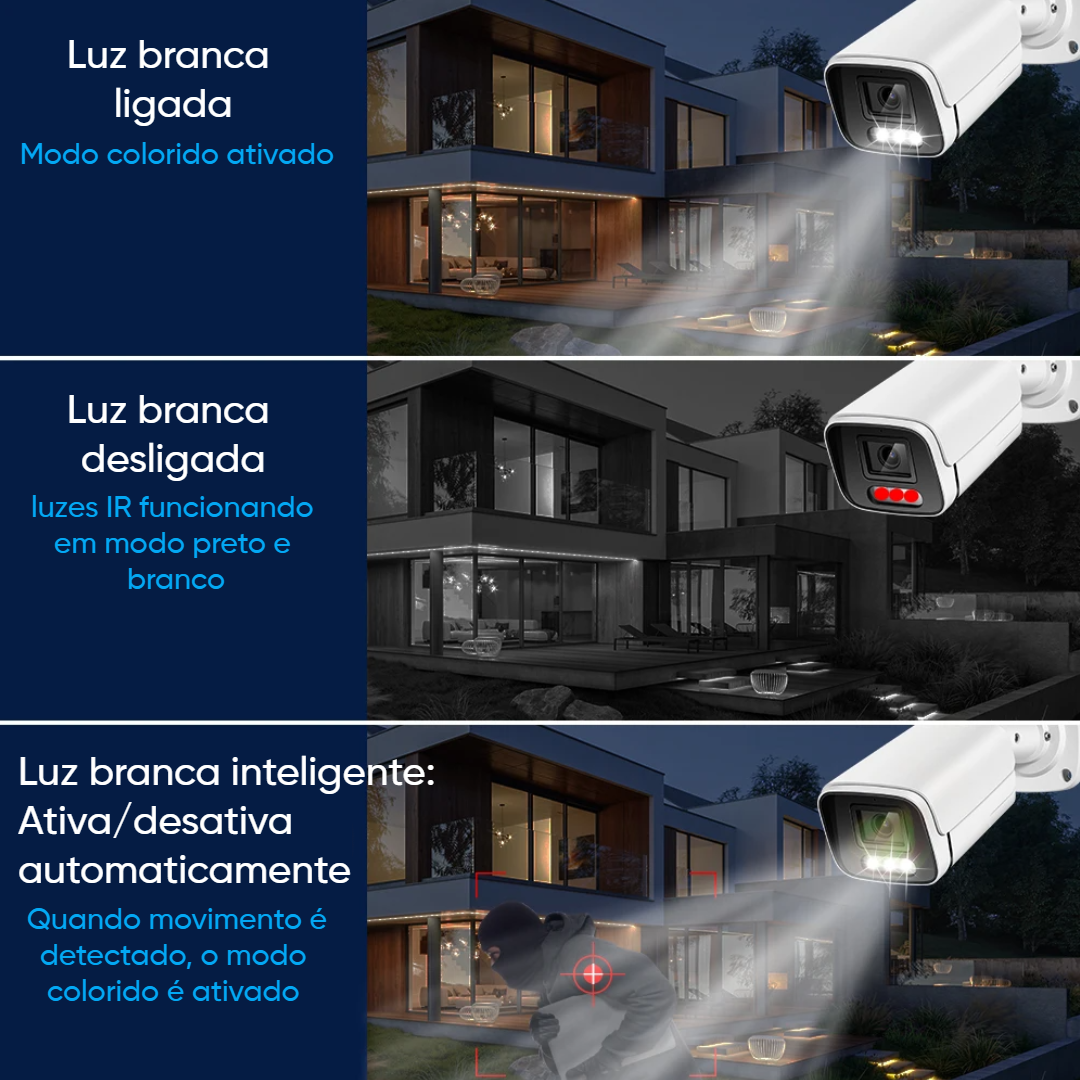 Essa câmera de vigilância de 8 MP oferece segurança de alta resolução, com sensor de movimento inteligente e visão noturna que garante imagens nítidas mesmo no escuro. Sua lente de 3.6 mm cobre uma ampla área, ideal para monitoramento eficiente em qualquer ambiente. A escolha perfeita para proteção contínua e confiável!