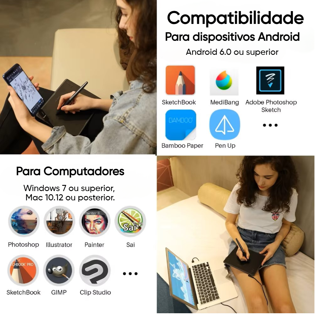 Liberte seu potencial com um tablet gráfico que combina precisão, desempenho e versatilidade. Ideal para artistas e criadores, ele transforma suas ideias em realidade com fluidez e controle absoluto.