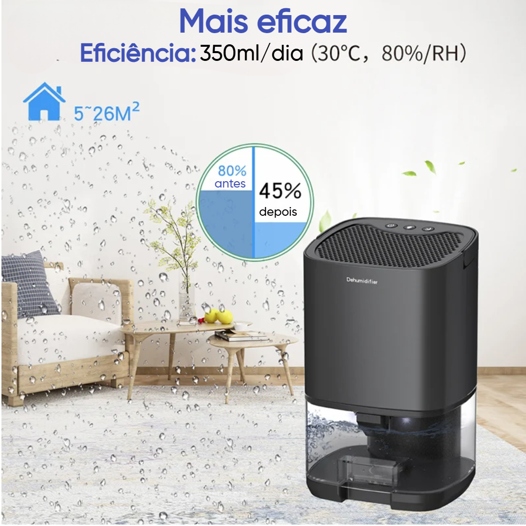 Desfrute de um ambiente mais saudável e confortável com o Desumidificador Compacto: potente contra a umidade e prático para qualquer espaço. Compacto e silencioso, elimina o excesso de umidade, prevenindo mofo e mau cheiro. Ideal para manter roupas, móveis e paredes sempre protegidos.