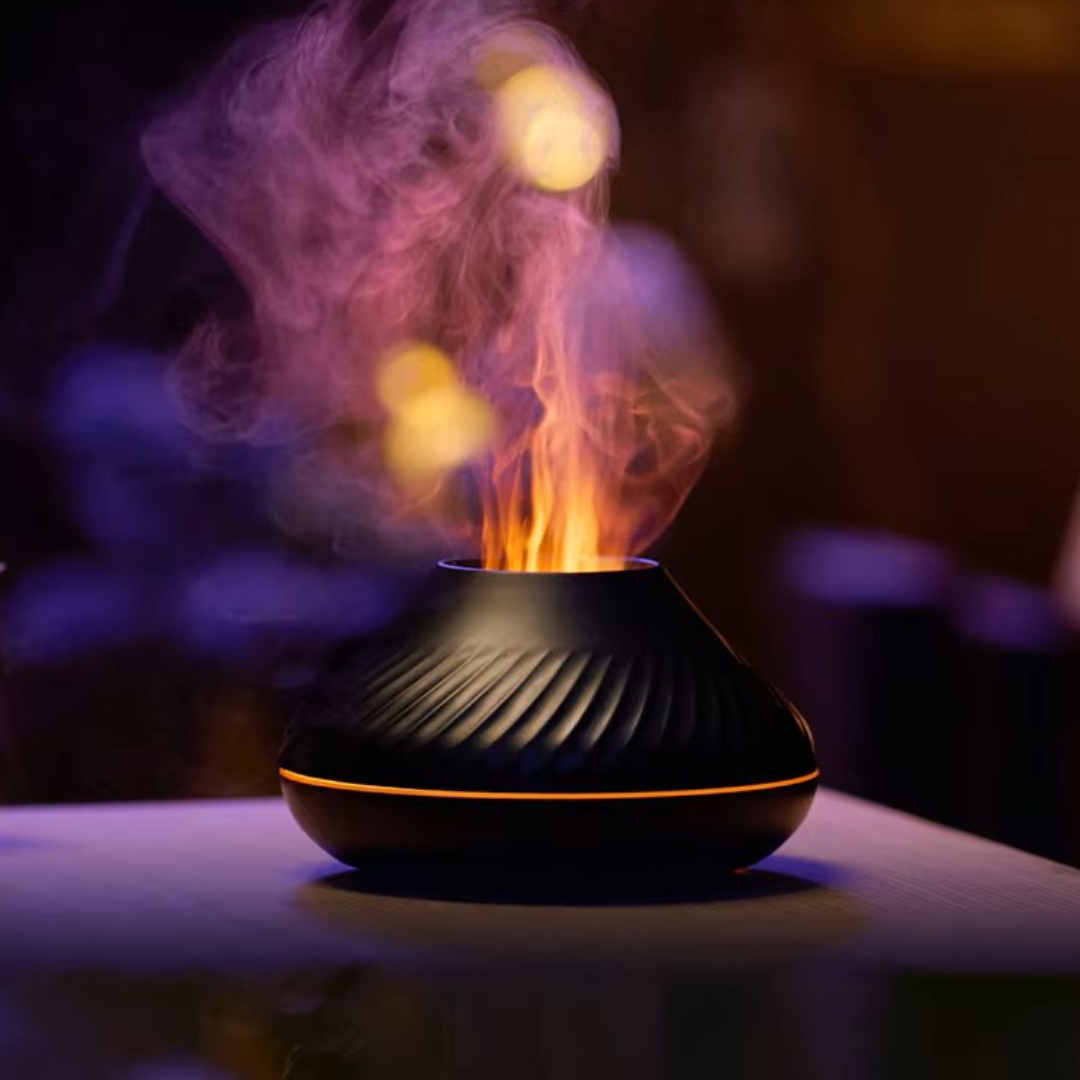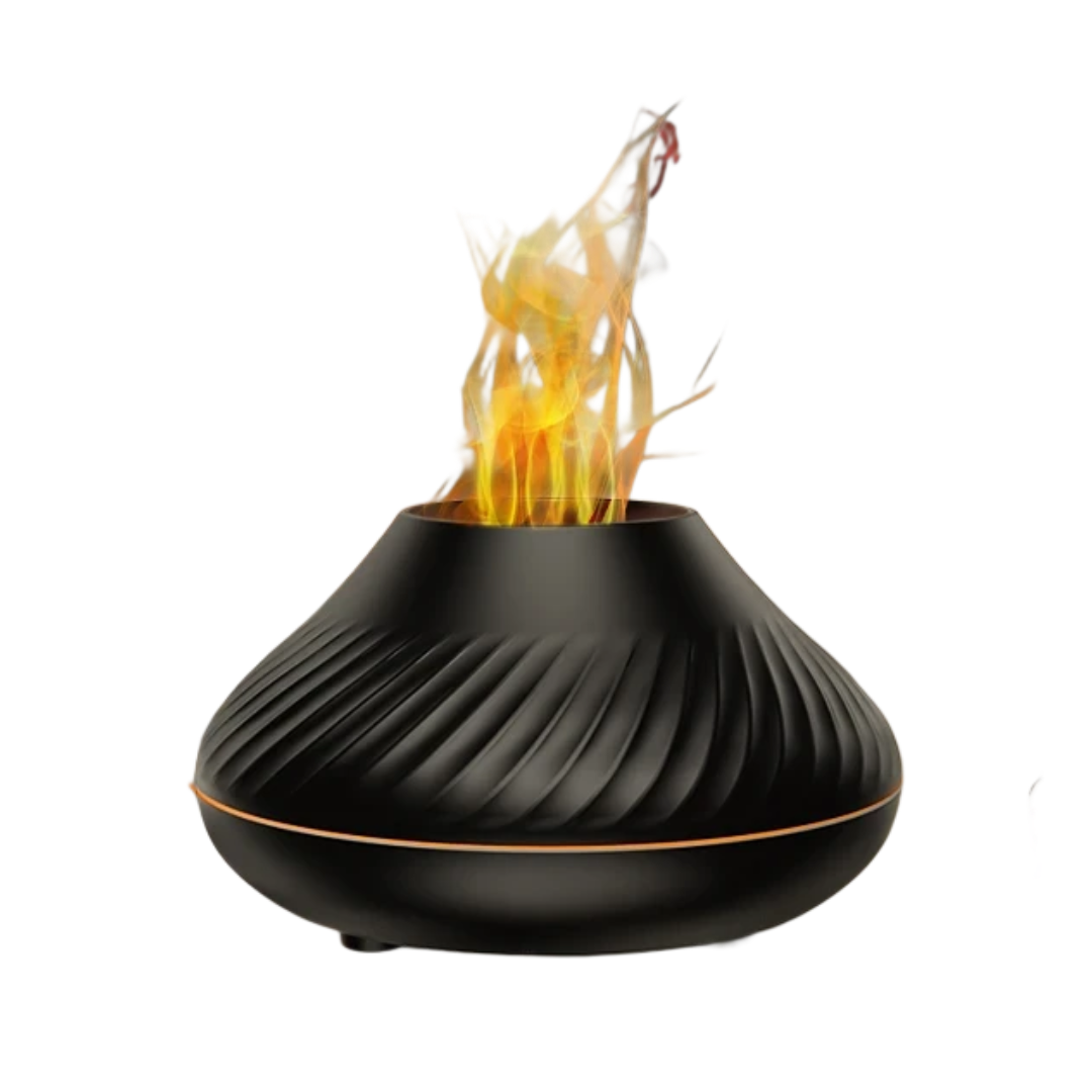Poderosas luzes LED brilham ao fundo, criando um efeito de chama realista. Você pode definir a cor da chama.
