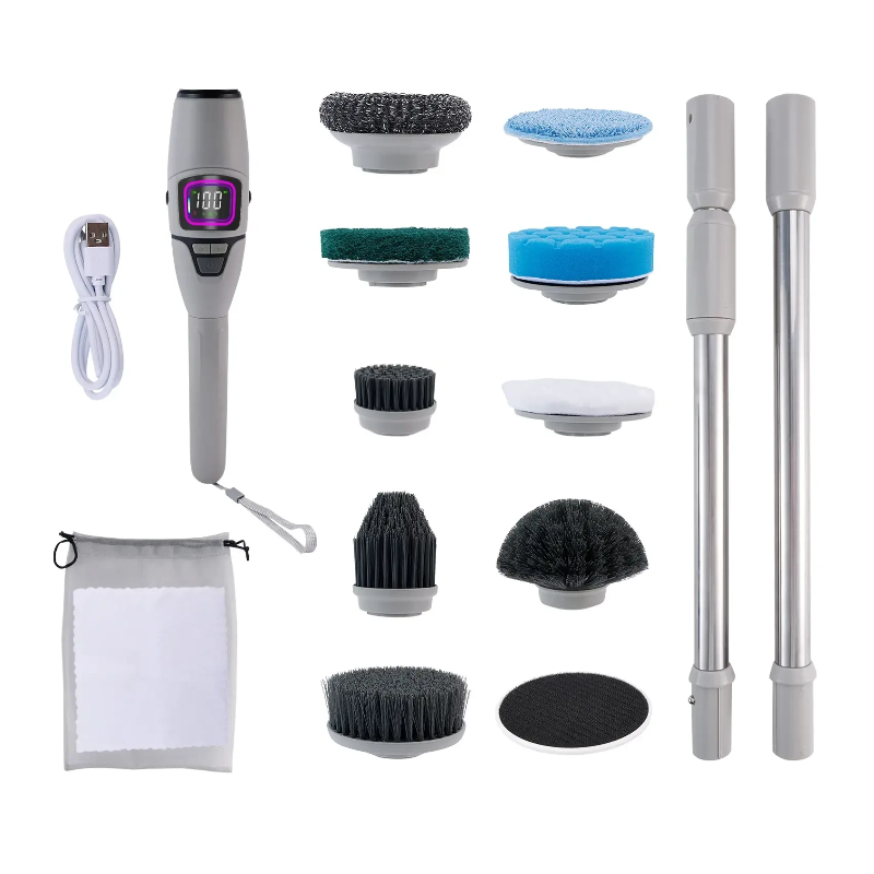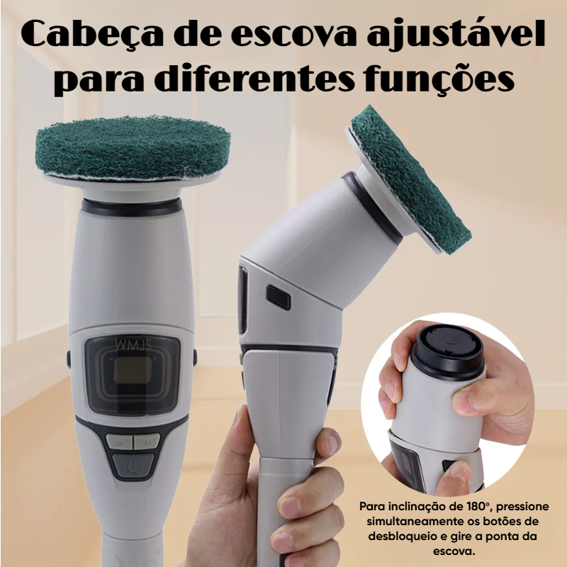 Com a Escova de Limpeza Elétrica 10 em 1, eliminar sujeiras difíceis ficou muito mais fácil! Com motor potente e até 430 rpm, ela proporciona uma limpeza eficiente em banheiros, cozinhas, pisos, janelas e muito mais. Graças ao sistema de troca rápida de escovas, você tem o acessório certo para cada tarefa: desde a escova plana grande para superfícies amplas até a escova afiada para cantos difíceis. Seu cabo extensível e ângulo ajustável de 45° e 180° garantem conforto e praticidade durante o uso.
