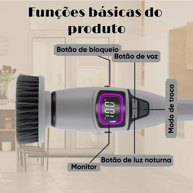 ✅ Luz ambiente e transmissão de voz para experiência intuitiva. Transforme sua rotina de limpeza com essa escova multifuncional poderosa!