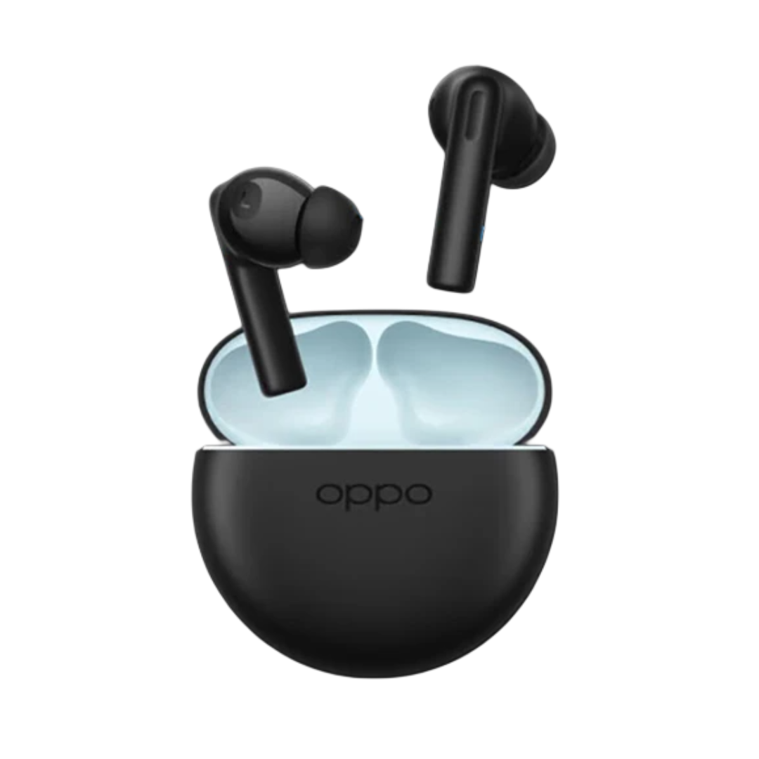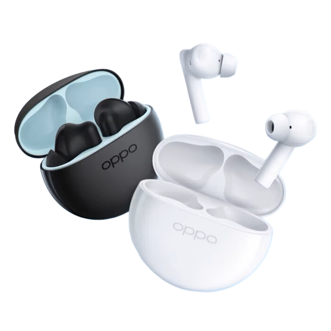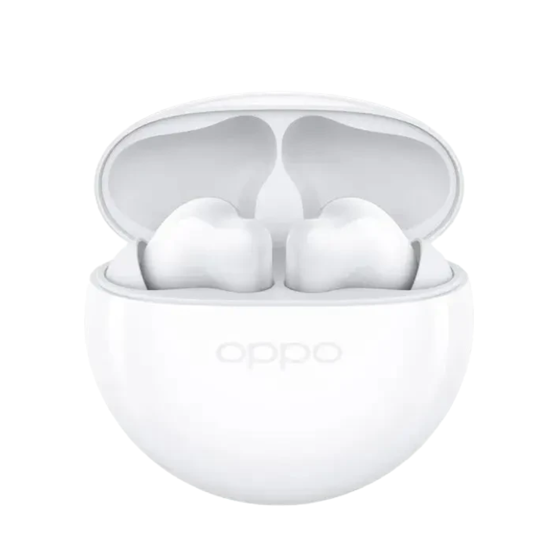 Fones de ouvido True Wireless da OPPO com design compacto e recursos avançados, incluindo cancelamento de ruído ativo, controle de volume, microfone integrado e conectividade Bluetooth 5.2. Ideal para esportes, chamadas e entretenimento.
