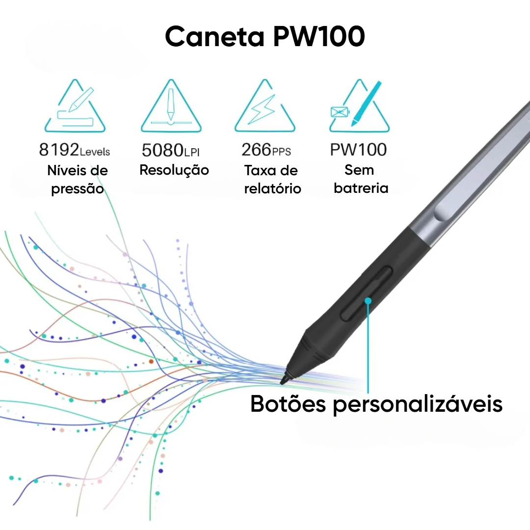 - A caneta digital sem bateria oferece 8192 níveis de sensibilidade à pressão, garantindo linhas detalhadas e precisas.