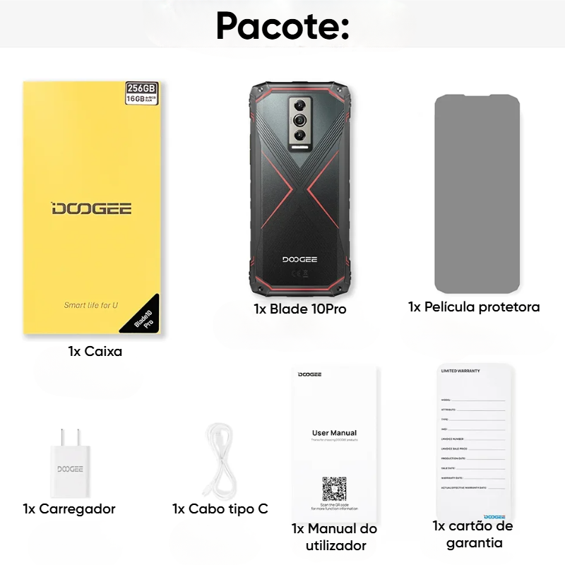 O DOOGEE Blade10 Pro combina resistência, potência e um design futurista. Com uma câmera principal de 50 MP AI, tela 6,56" HD+ 90 Hz e um processador Octa-Core, garante alto desempenho para qualquer tarefa. Seu sistema Android 14 oferece mais segurança e fluidez, enquanto a bateria de 5150mAh proporciona longa duração. Além disso, é à prova d'água e impactos (IP68/IP69K) e conta com NFC, GPS avançado e armazenamento expansível até 2 TB. Um smartphone robusto, inovador e pronto para qualquer desafio!