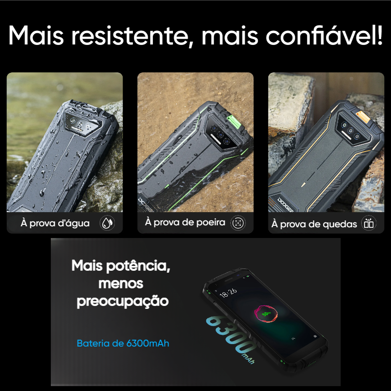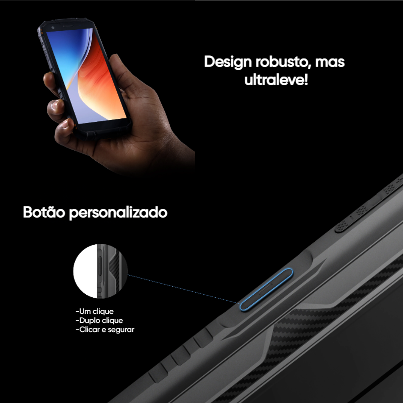 - Certificações: MIL-STD-810G, IP68/IP69K (resistente à água e poeira)