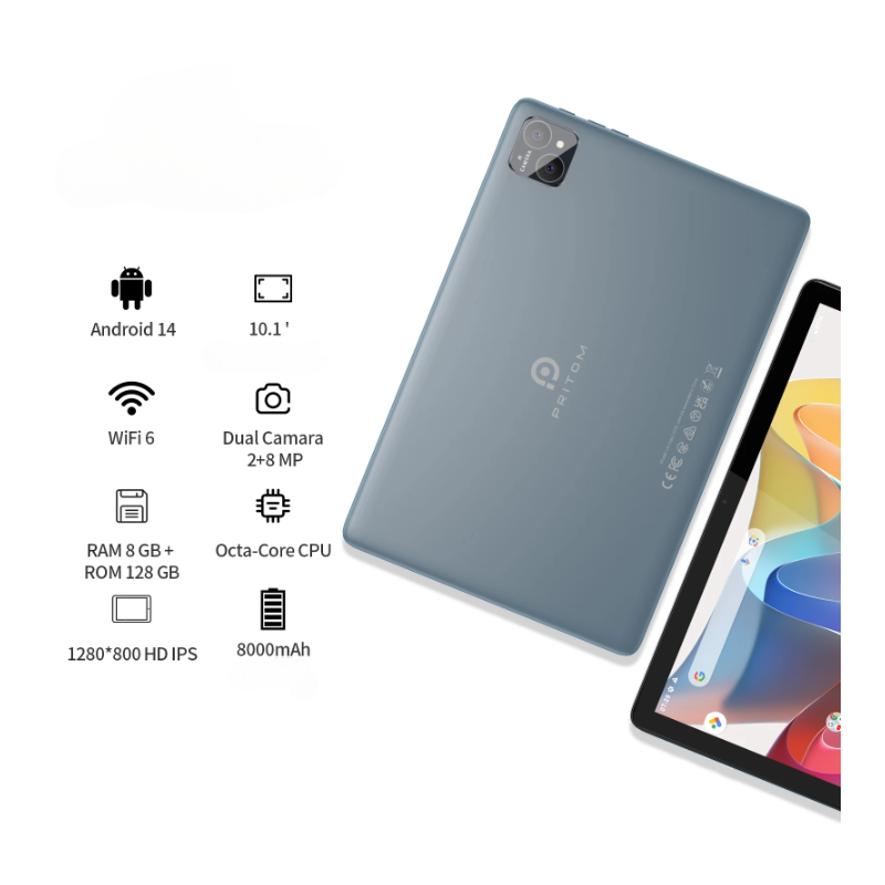 O Tablet Pritom Android 14 de 10,1” oferece desempenho excepcional com processador Octa-Core, 8 GB de RAM (expansível até 12 GB) e 128 GB de armazenamento. Sua bateria de 8000mAh garante longas horas de uso, enquanto a tela IPS HD proporciona imagens vibrantes. Equipado com câmeras duplas (8 MP + 2 MP), conectividade Wi-Fi e compatibilidade com Google Play, este tablet é perfeito para trabalho, estudos e entretenimento. Além disso, acompanha um teclado Bluetooth, mouse, capa protetora e caneta touch, tornando-o a escolha ideal para produtividade e lazer.