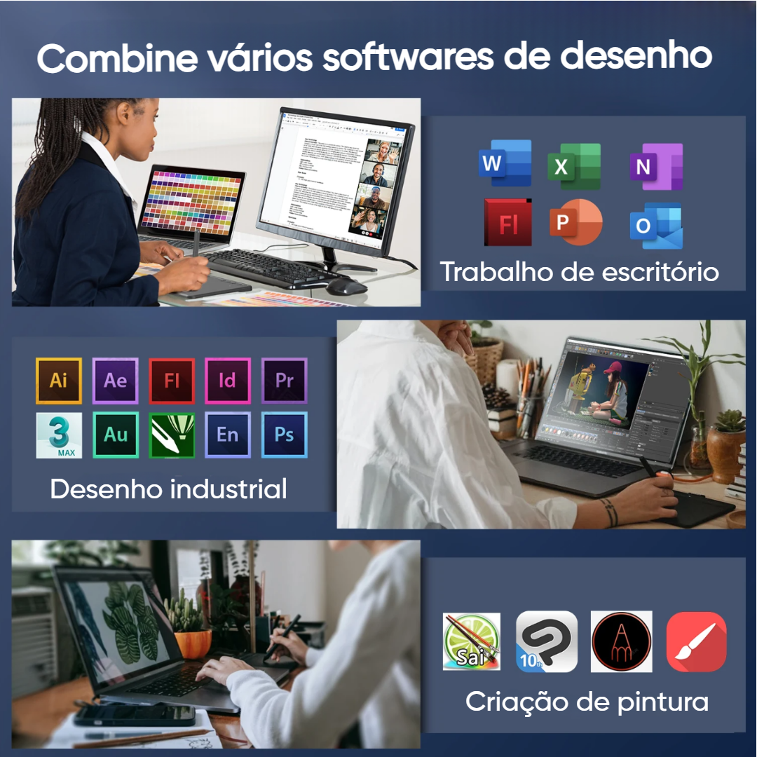 • Perfeito para Artistas Digitais: Seja você um profissional experiente ou um entusiasta iniciante, este tablet oferece todas as ferramentas essenciais para transformar suas visões criativas em realidade com precisão e facilidade.