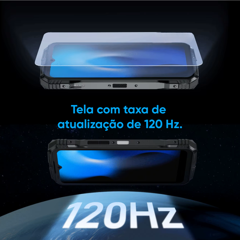 Para os aventureiros, sua certificação IP68/IP69K e MIL-STD-810H proporciona máxima resistência contra quedas, água e poeira. Já sua tela FHD+ de 120Hz entrega imagens nítidas e fluidas.